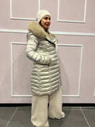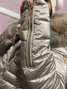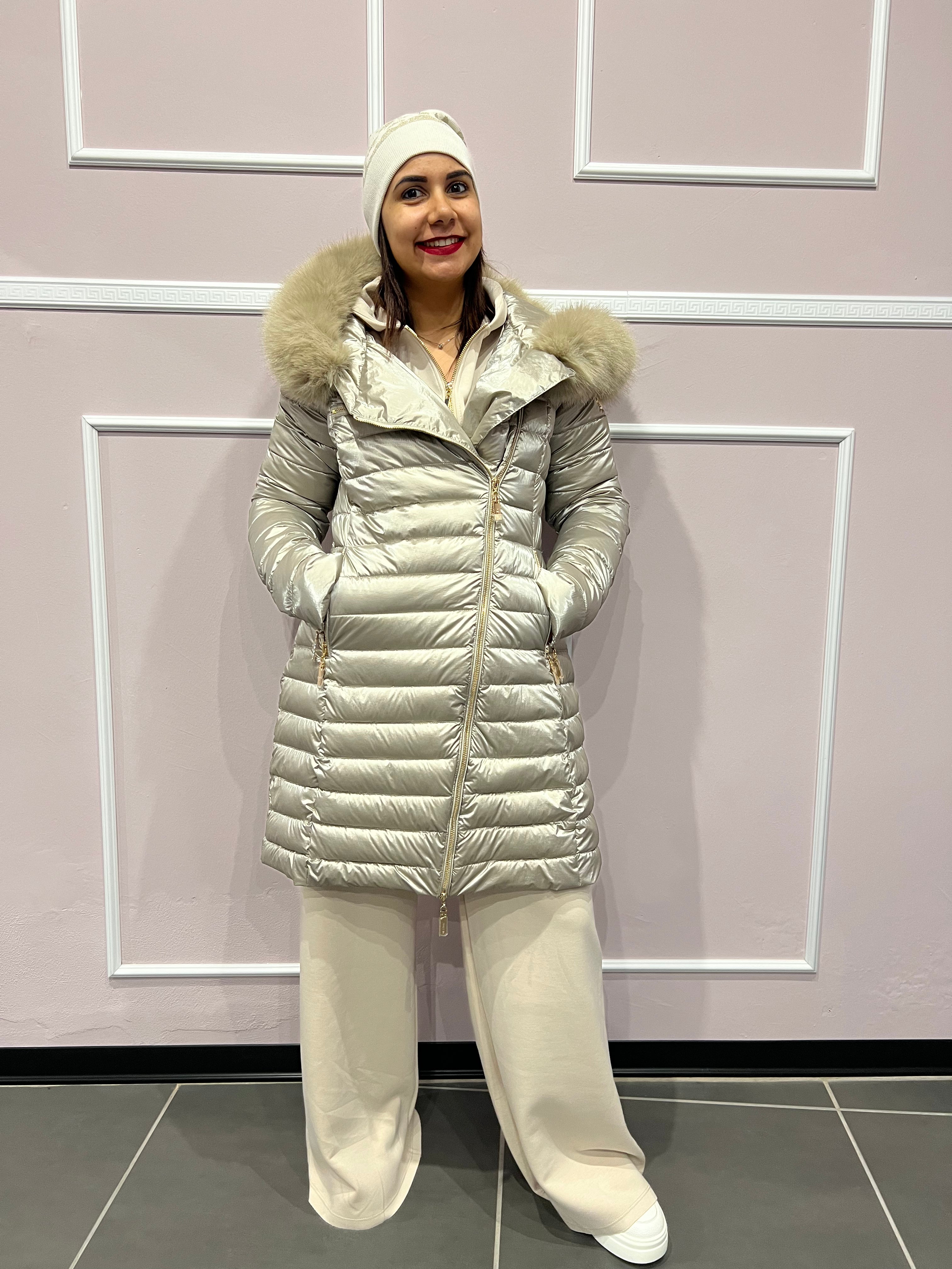 Affronta l'inverno con grinta e glamour grazie al piumino lungo Diessam dal finish satinato. La zip trasversale dona un tocco urban-chic, mentre il cappuccio con ecopelliccia staccabile ti permette di cambiare look con un gesto. Pratiche tasche, maniche lunghe e dettagli curati per un outerwear che unisce comfort, versatilità e carattere.