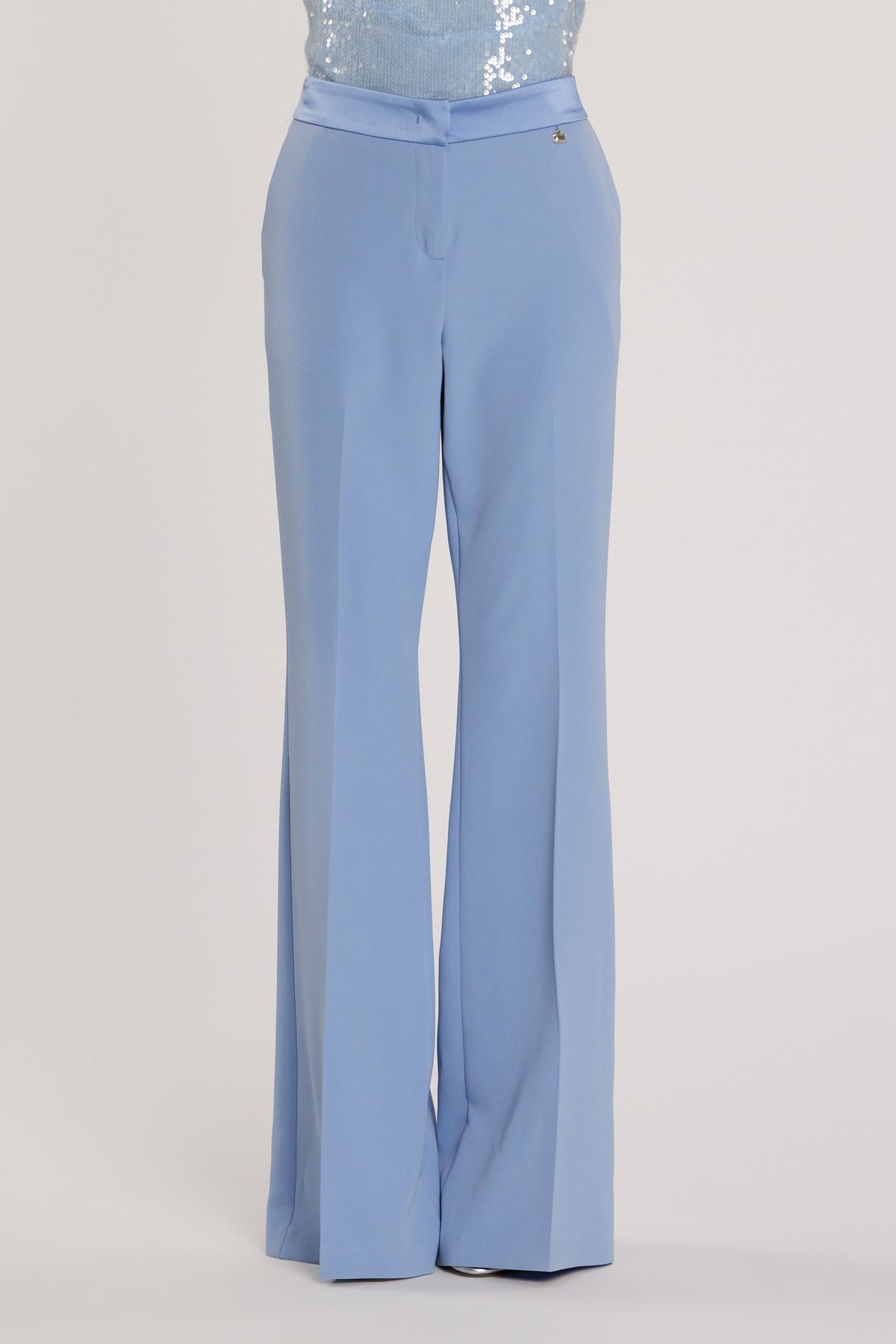 Pantalone Barrington vita alta a zampa con inserti in raso.